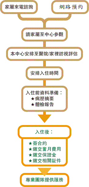 2.若您已確定要入住本中心,請務必要當面或來電告知我們,我們會先安排至家裡或醫院評估病人
