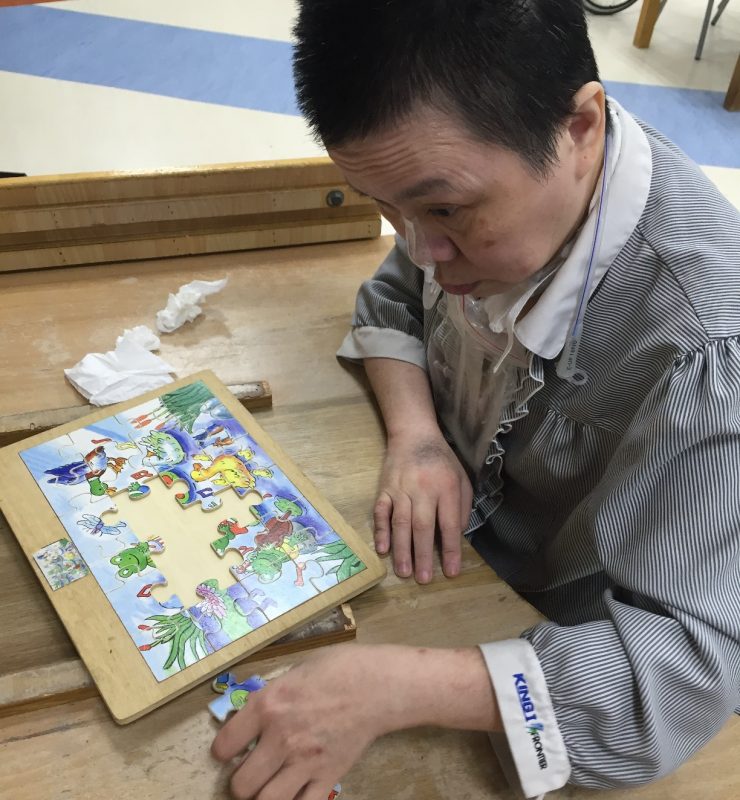 詹欽熒就這樣無意識的躺著,這階段主要負責照顧她的是護理人員,護理長劉怡婷每天關注著她,除了一般的生活照顧,像翻身、拍背、換尿布(排便需求),更重要的事是對她進行聽覺刺激「我們每天趁著幫她做這些照顧的同時,盡量讓她的眼睛跟我們對焦,並且跟她講我們幫她做的所有事情,這段期間,她的眼睛大多數是失焦的狀態,直到半年之後,有一天突然和我對上焦了,有反應了,此刻,所有護理人員都非常開心,這表示,長期的聽覺刺激與近身照顧,對她起了非常重要的作用。」