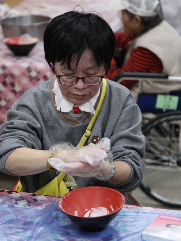 第一次見到詹欽熒,也是我到豐榮醫院籌備處的報到日,我以為她是護理之家住民家屬(在這個大家庭中,我們不稱入住者為病人,而以住民稱之),可見她的狀況有多好,後來才了解,她現在身上的氣切口,是三年多前發病的唯一印記!